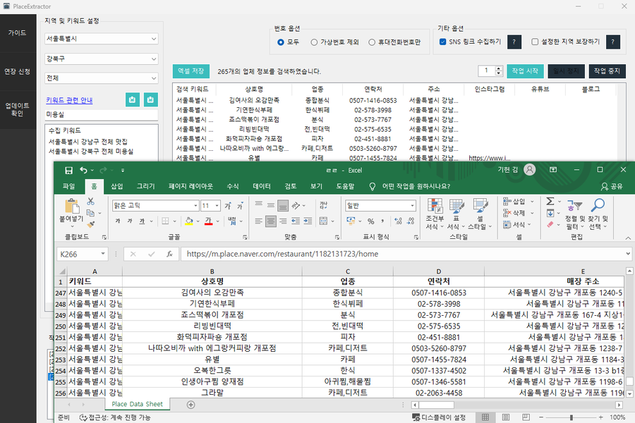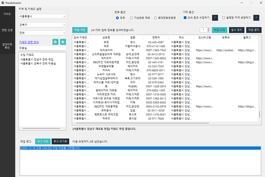 네이버 플레이스 사업자 DB 추출 프로그램 구동 영상